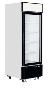 Elegant black display cooler with canopy