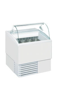 Scoop ice cream freezer with curved glass sneezeguard