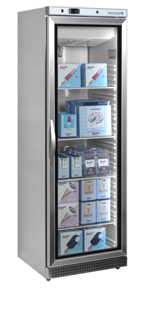 The UF-VSG range of display freezers is the ventilated version of our stainless steel glass door freezers. It comes in a variety of sizes and offers great flexibility with adjustable shelves. The effective ventilated refrigeration system ensures an even temperature throughout the cabinet. The temperature can be set on an easy-to-use digital thermostat display. Defrost happens automatically.